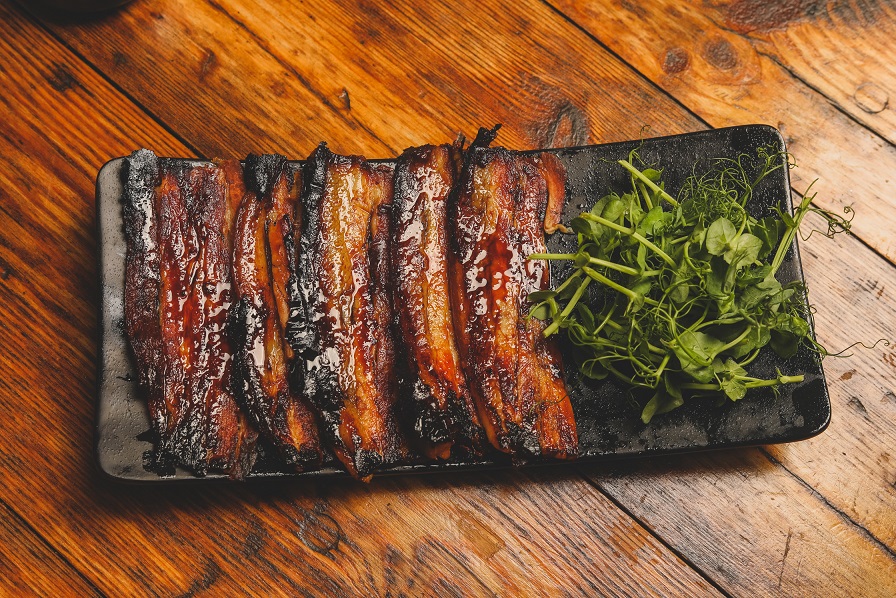סלק,סלק צלוי במייפל טהור, סויה קוראנית, ג׳ינגר, שאטה, בצל ירוק ואפונת וואסבי, שילוב של טעמים , מתוק מהסלק וחריפות מאפונת הוואסבי וחציל מאודה עם צ'ילי, קריספי שאלוט ובצל ירוק: