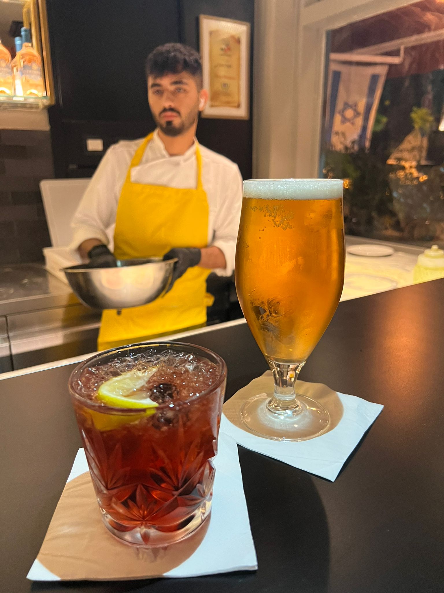 תחילה הזמנתי קוקטייל ג'ין אמרנה מתקתק והוא בחר בבירת לככר איטלקית מורטי מהחבית.