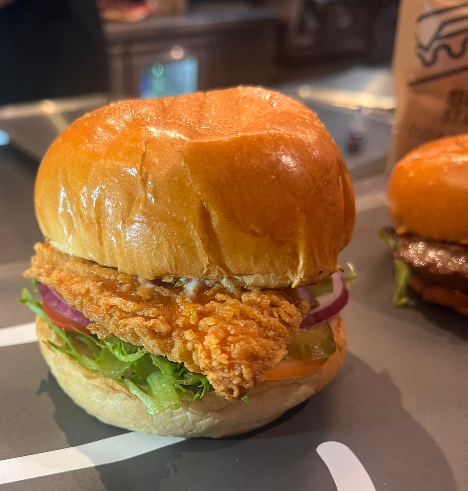 קריספי צ'יקן -חזה עוף מטוגן וקראנצי,איולי שום, איולי שיפקה, חמוצים,חסה, עגבניה ובצל סגול