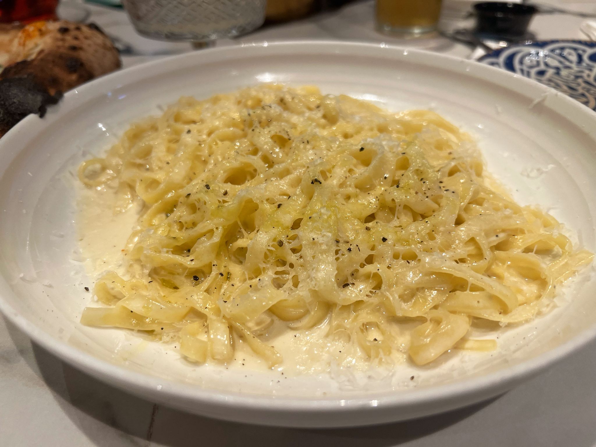 הזמנו גם פסטה קאצ׳ו אה פפה עם הרבה גבינה מעל.