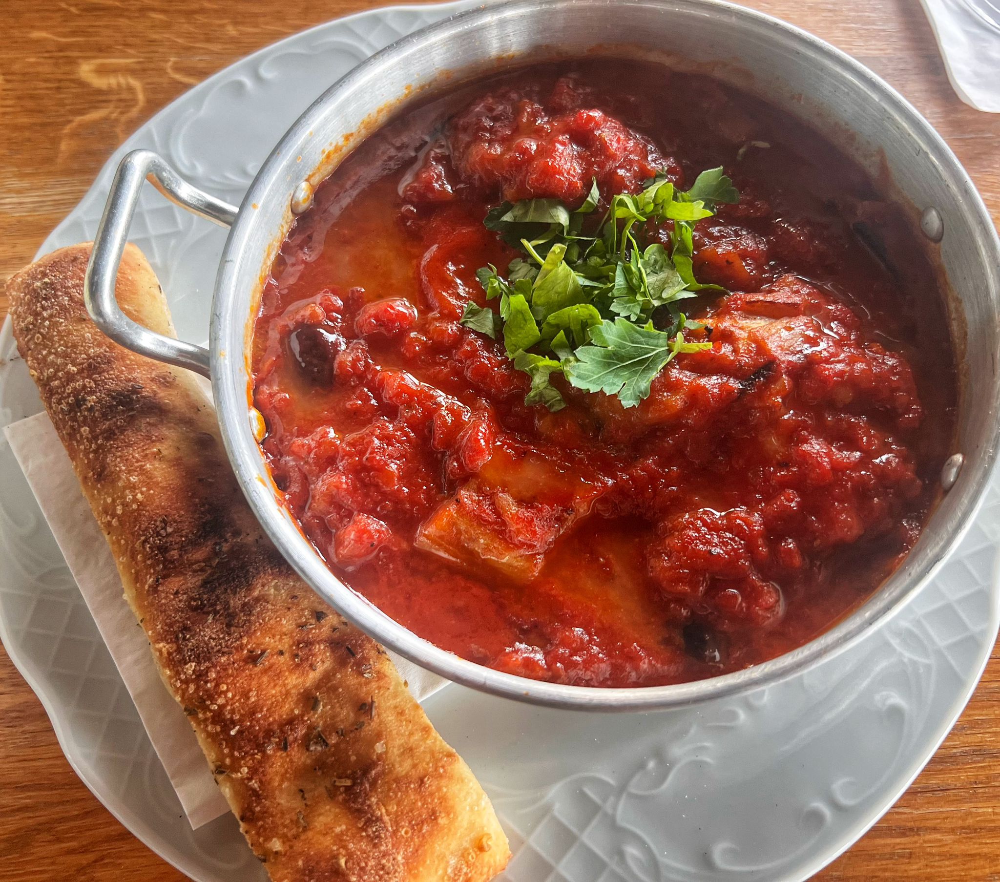 הוגש עם פוקאצ'ינה חמימה וקראנצ'ית לטבילה בתוך כל הרוטב האדום.