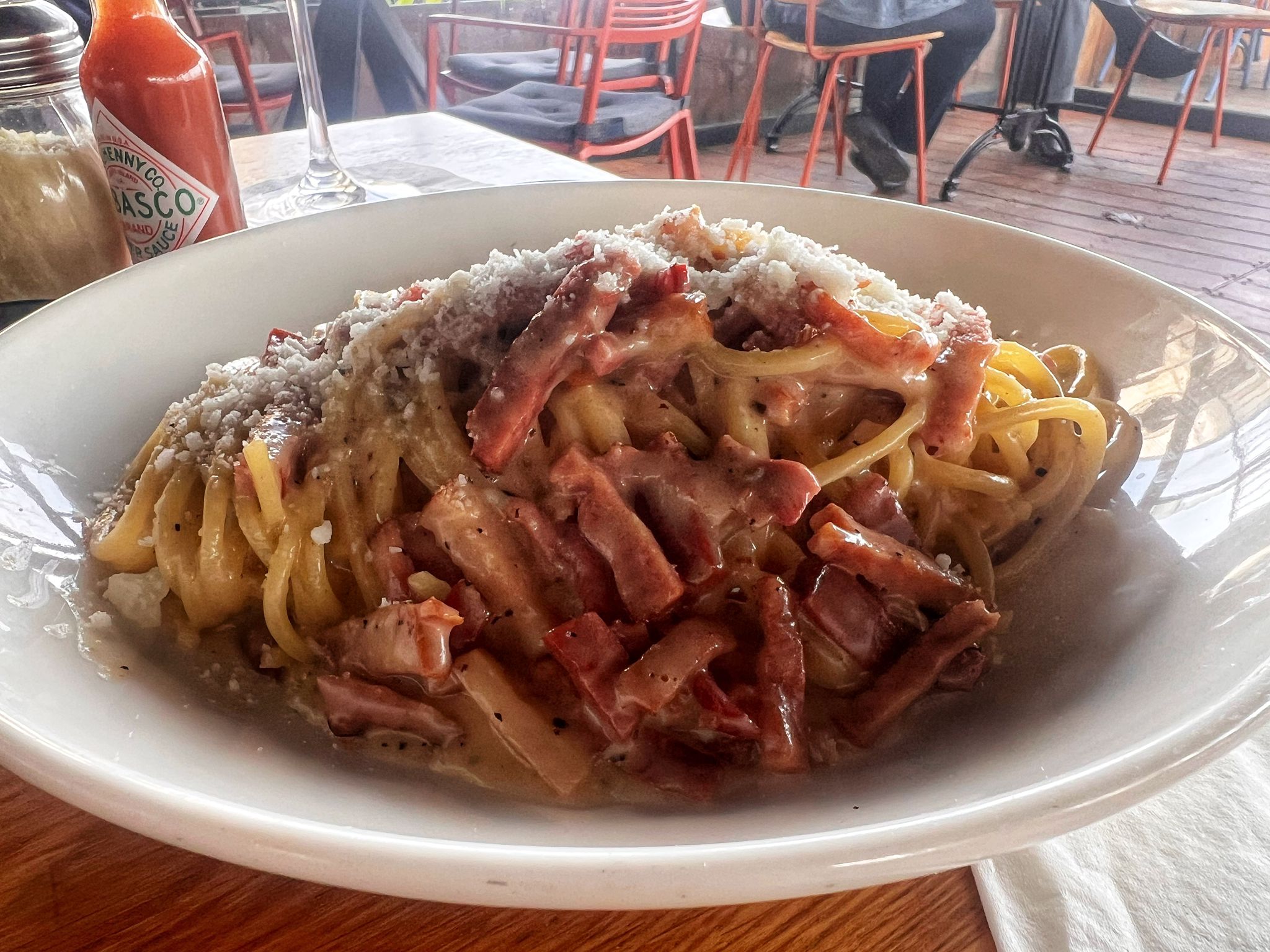 אני בחרתי בפסטה קרנבורה שהגיעה בדמות ספגטי, חמאה, פלפל שחור קלוי, פנצ‘טה בקר ואווז קצוצים, חלמון ביצה,פרמז'ן וגבינת פקורינו רומאנו,שעוטפים את כל הפסטה ברוטב קרמי עשיר.