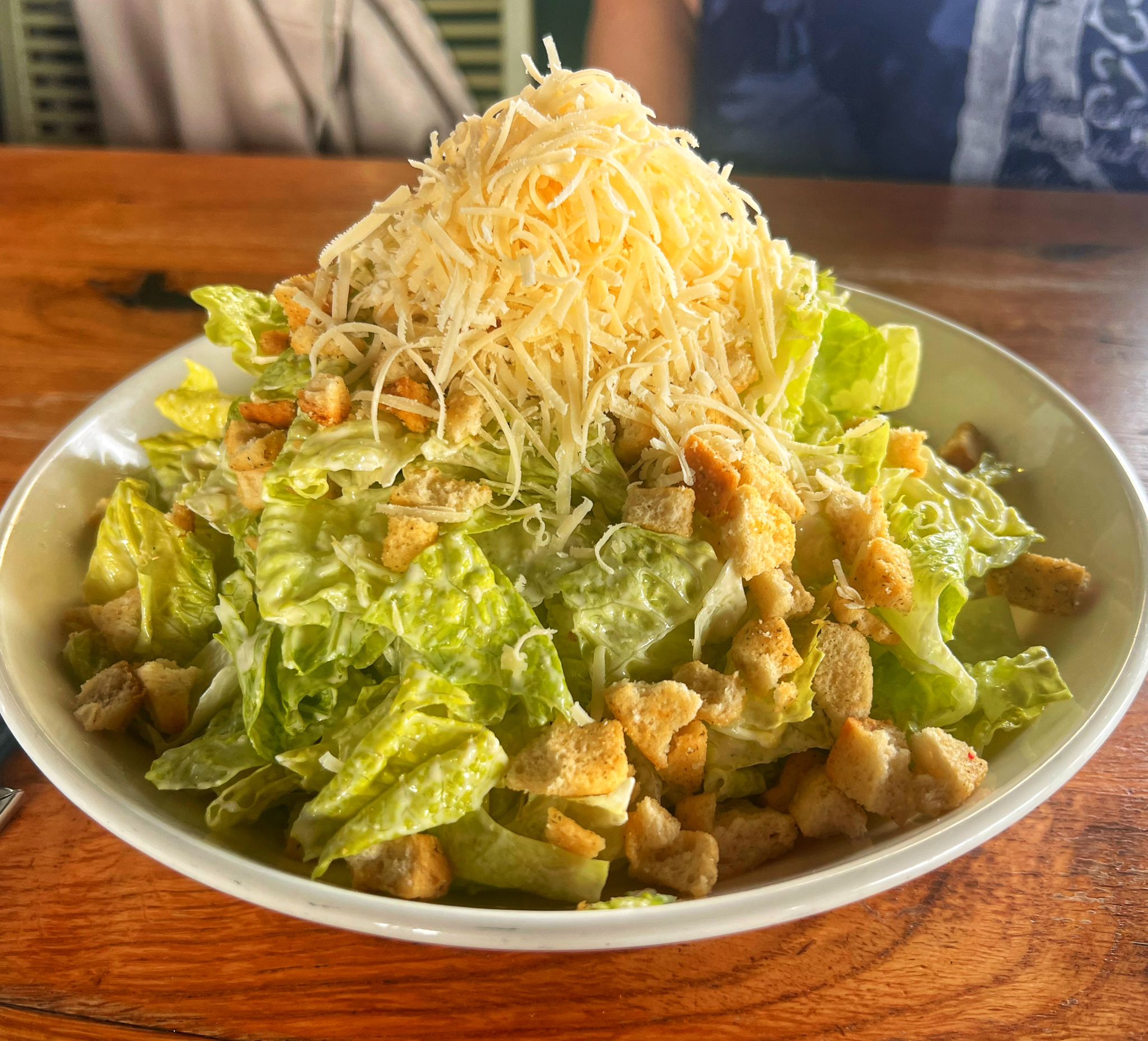 בחרנו בסלט קיסר, לבבות חסה רומית טריים, קרוטונים, רוטב קיסר ופרמז‘ן מגורר מעל: