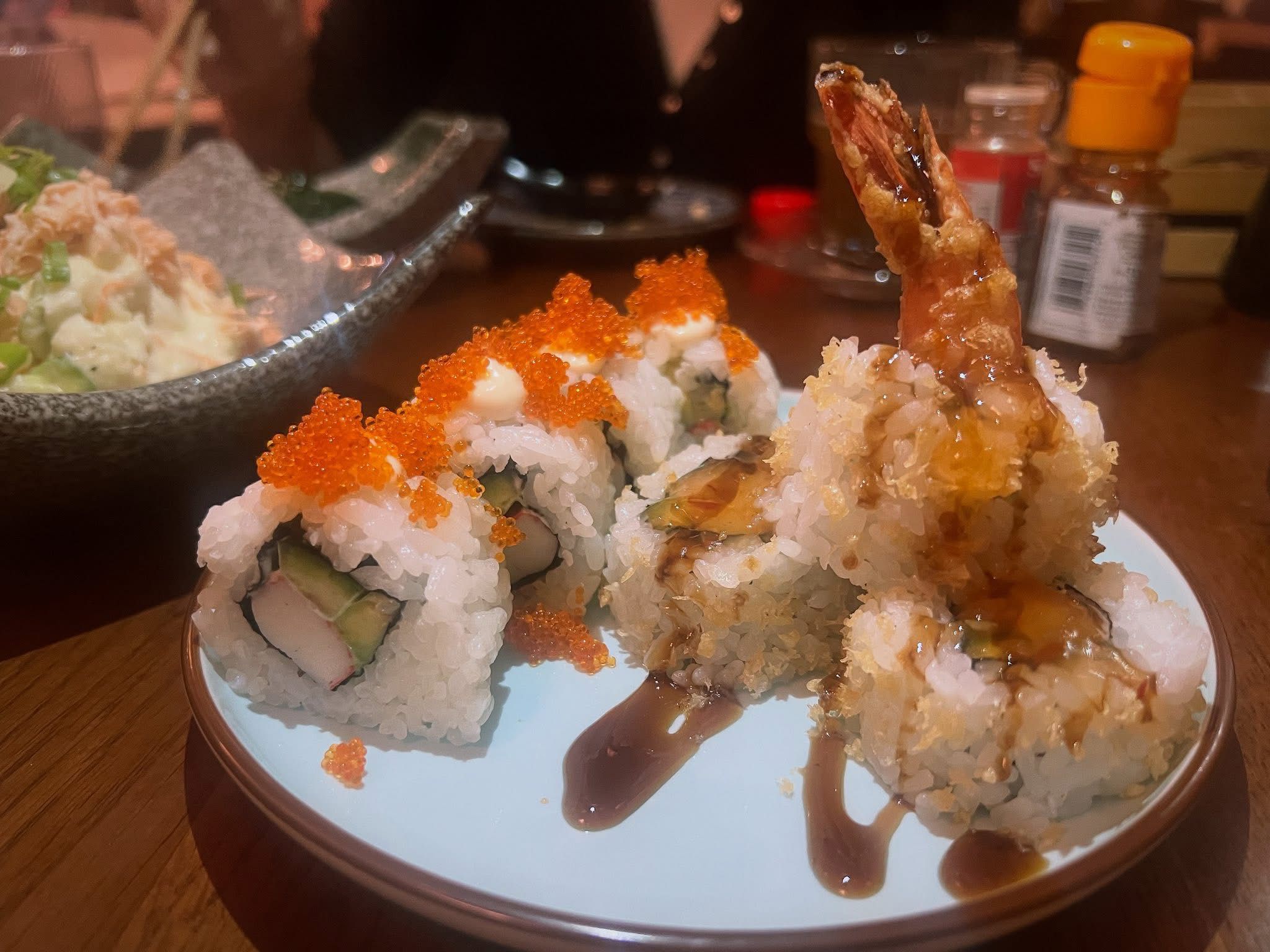 הארוחה פה כוללת שני רולים של סושי, בצלחת אחת הוגשו 4 יחידות סושי מכל רול, ואפשר ריפיל.