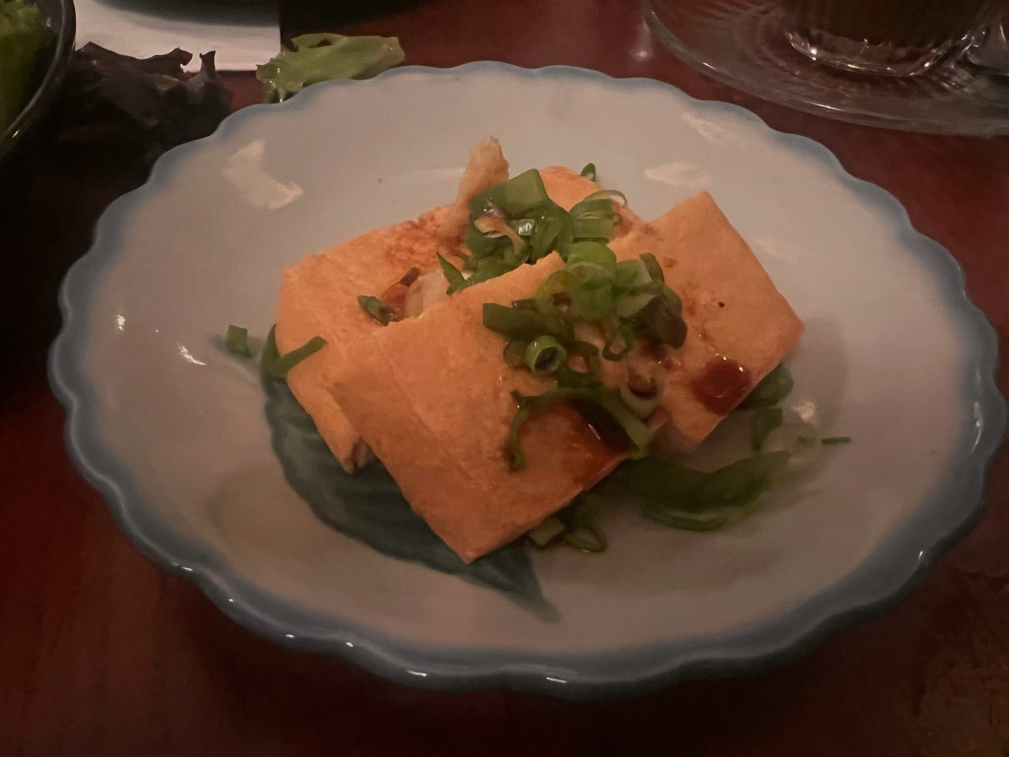 אטסואגה טופו,מנה שהפתיעה, טופו המטוגן היה במרקם רך וחלק ברוטב סויה וג'ינג'ר.