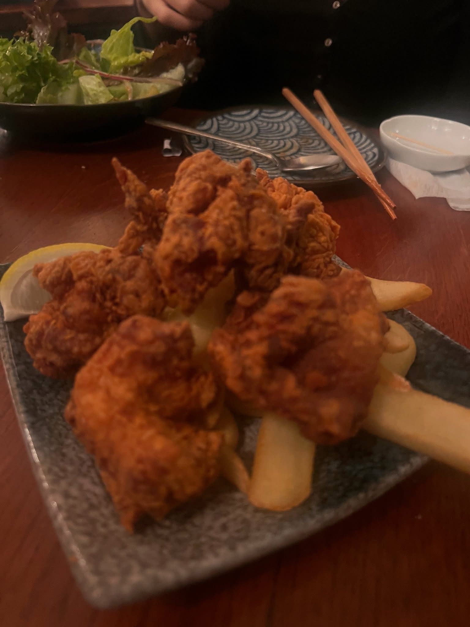 קארה אגה-כדורי פרגית מטוגנים וצ'יפס, היו קריספיים די מגרים במראה אך נעדרי כל טעם ותיבול, חבל, מאד מפוספס.