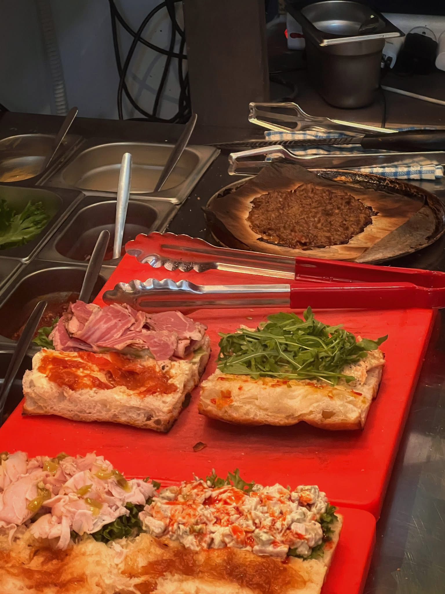 טרטר אותי- מספר נקניקים קצוצים: פסטרמה, רוסטביף ואווז, איולי קלאסי, חסה, קורנישונים, בצל סגול קצוץ,צלפים, סלסת שום, ריבת בצל, ופטרוזיליה-מלא טעם, מלא ג'וס.